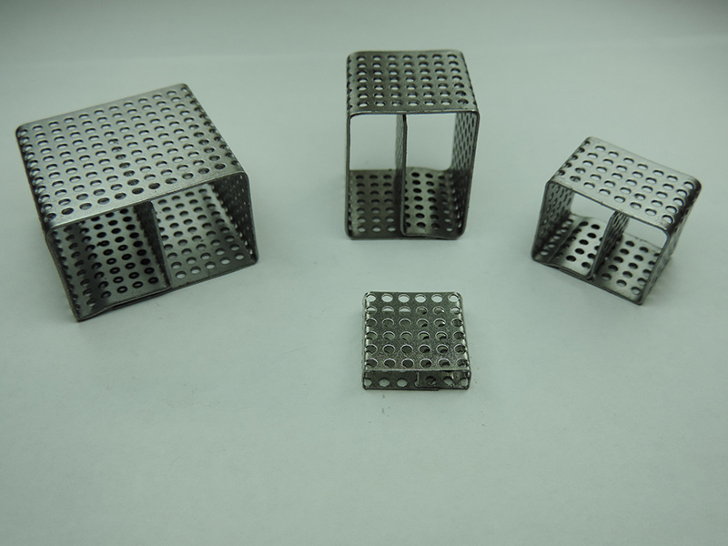Perforated Chaplets (also referred to as core stabilizers, box chaplets, pipe chaplets and channel chaplets) are manufactured from tin coated steel sheet or non-ferrous sheet, depending on the metal being cast. These chaplets can be used in thin-walled or heavy metal sections of castings but are best suited for placing in the bottom or drag of the mold. Standard perforation is # 6 or .075 hole on .125 center. Standard material thickness is .030. Perforated chaplets can be produced to resemble a box, Form # 1 and 1A. The information listed below details general characteristics on their dimensional design.