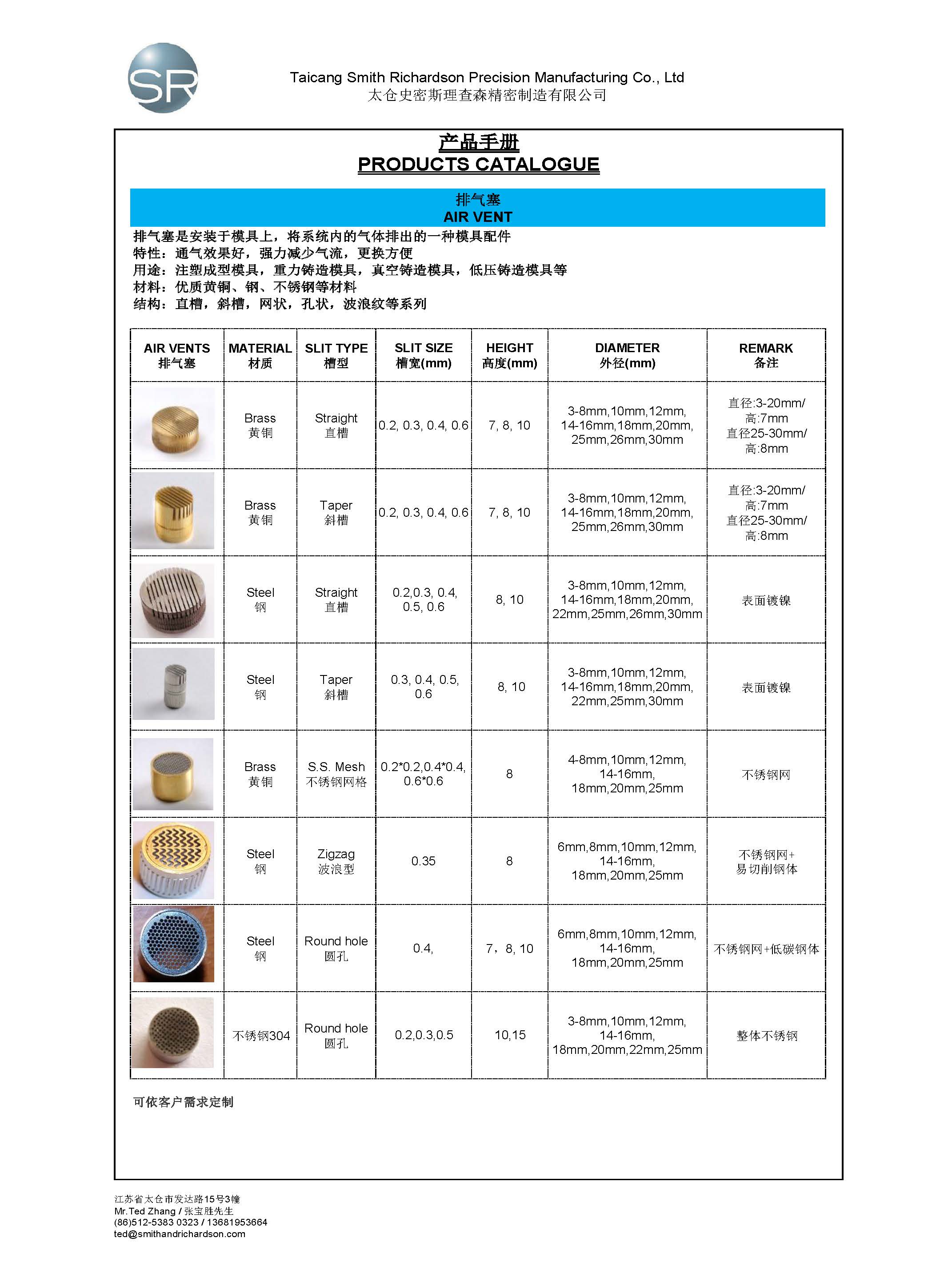 Smith & Richardson offers the widest range of popular core box vents. Most are available in US and Metric sizes.
